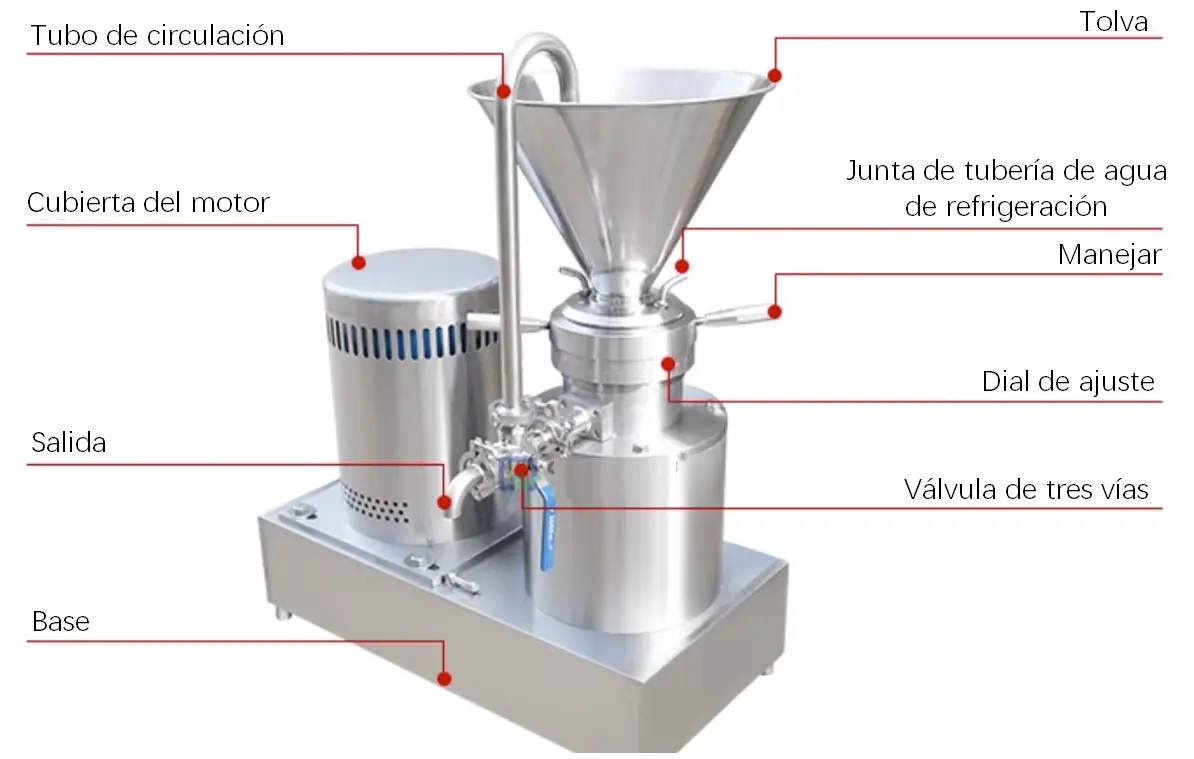 Los molino coloidal para alimentos se utilizan en el procesamiento de productos cárnicos, mariscos y en la transformación de frutas, verduras, granos y productos agrícolas. Algunos ejemplos comunes de molinos coloidales en la industria alimentaria son el molino coloidal chile, molino coloidal carne, molino coloidal para cacao, molino coloidal mantequilla de mani, molino coloidal mayonesa, entre otros. Los molinos coloidales funcionan mediante la fuerza de corte, molienda y agitación de alta velocidad para lograr una trituración fina y una dispersión intensa de los materiales. Los molinos coloidales son especialmente adecuados para el procesamiento preciso de materiales en las industrias alimentaria y química, y son equipos ideales para el procesamiento de materiales finos. A continuación, se presentan algunos ejemplos más específicos de molinos coloidales aplicaciones.